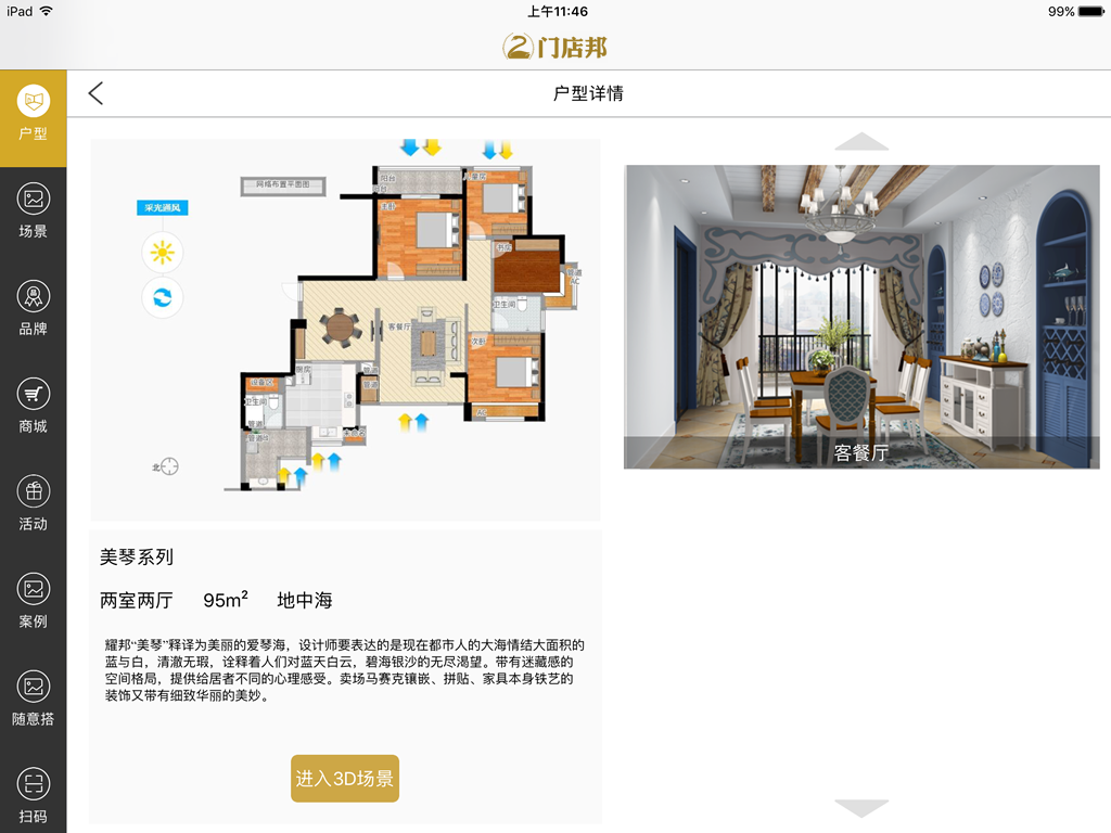 门店邦,一种有品味的家居新方式。我们根植于泛家居联合与优势,核心团队20余年行业经验,通过联合经典品牌,研发3D云设计系统,智能生成3D场景。平台专业设计师搭配整体配套方案,多维度感受家居新体验,为消费者提供一个高品质、高品味的家。